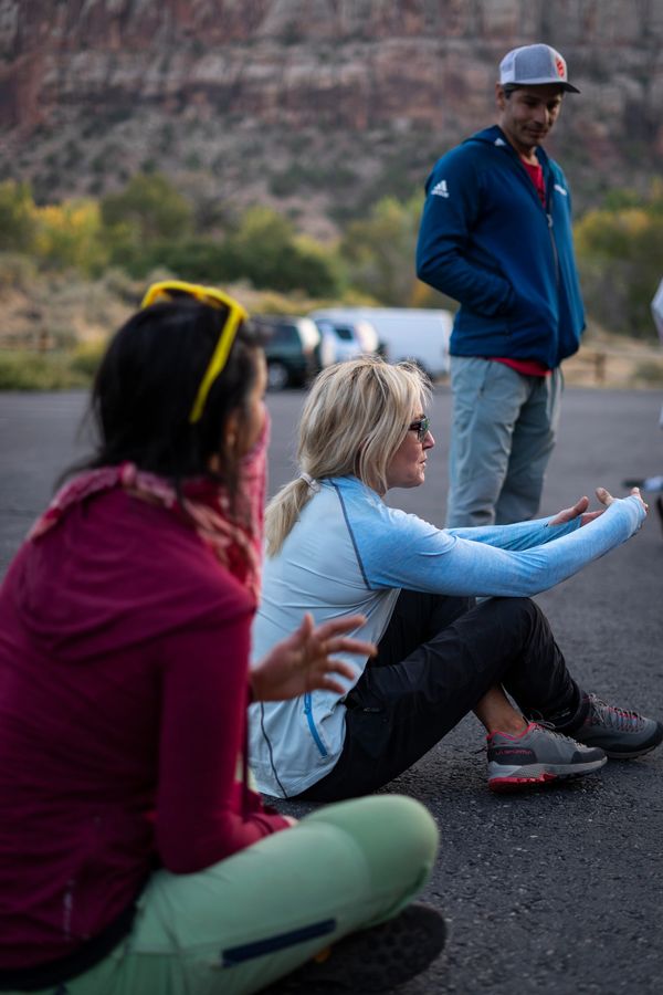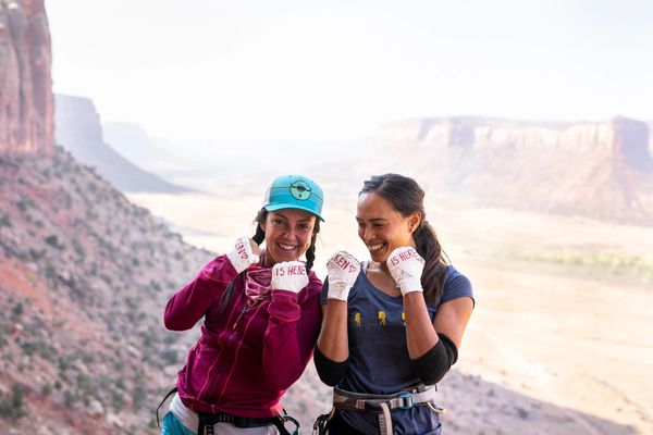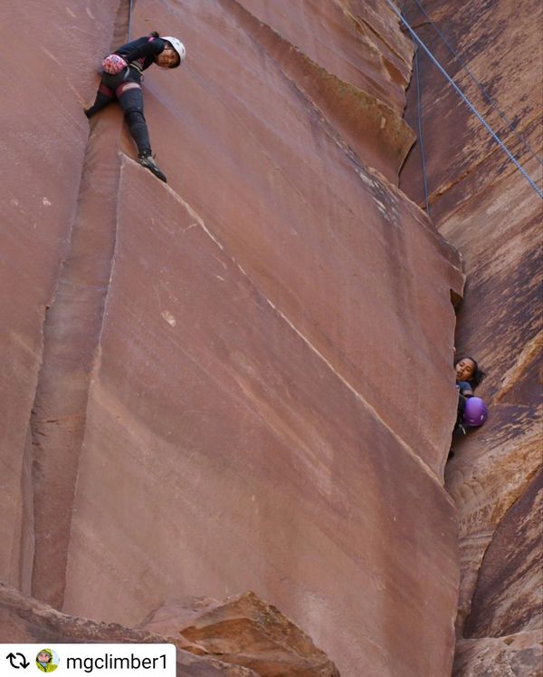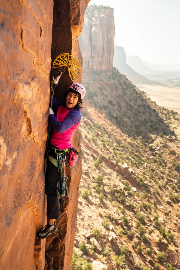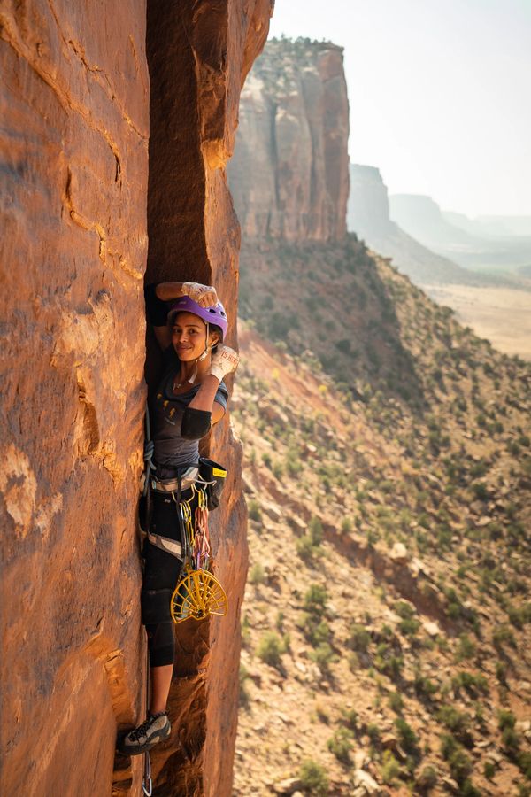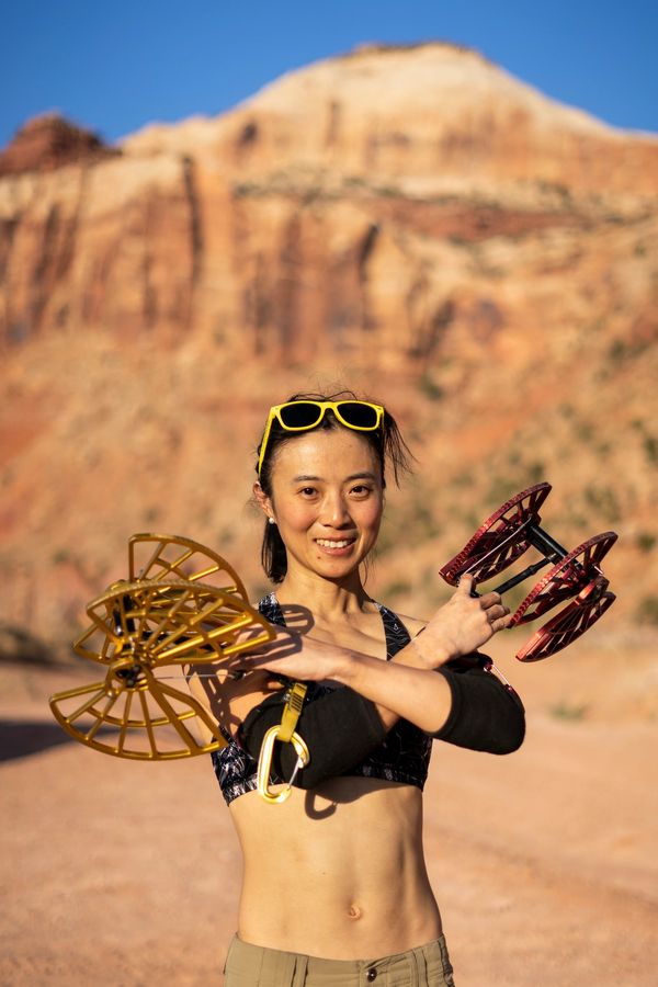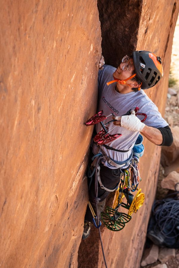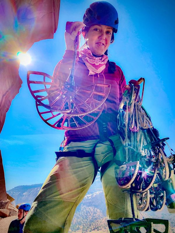 Gi is a professional climber base in Moab, with a passion for guiding, teaching clinics, and planning trips to Patagonia. She co-instructed "The Art of Offwidth" clinic alongside Pamela "Shanti" Pack for four years. Pam and Gi climb through classic offwidths, from Indian Creek, UT, to the challenging test pieces in Vedauwoo, WY, and the art of establishing First Ascents.